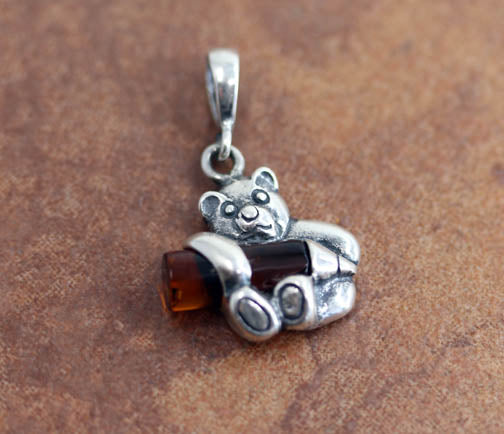 Sterling Silver Baltic Amber Teddy Bear Pendant