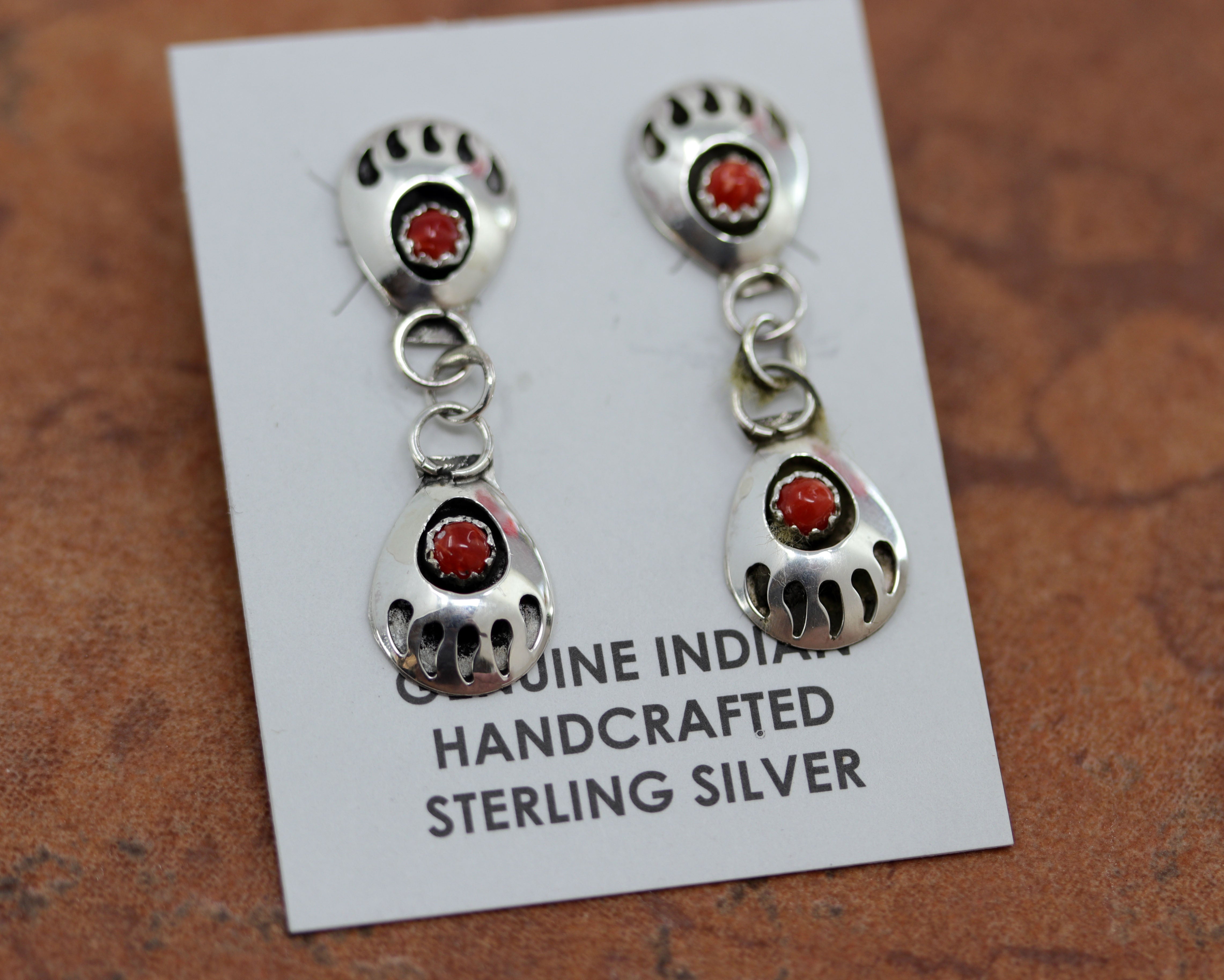 Navajo Coral Bear Paw Earrings