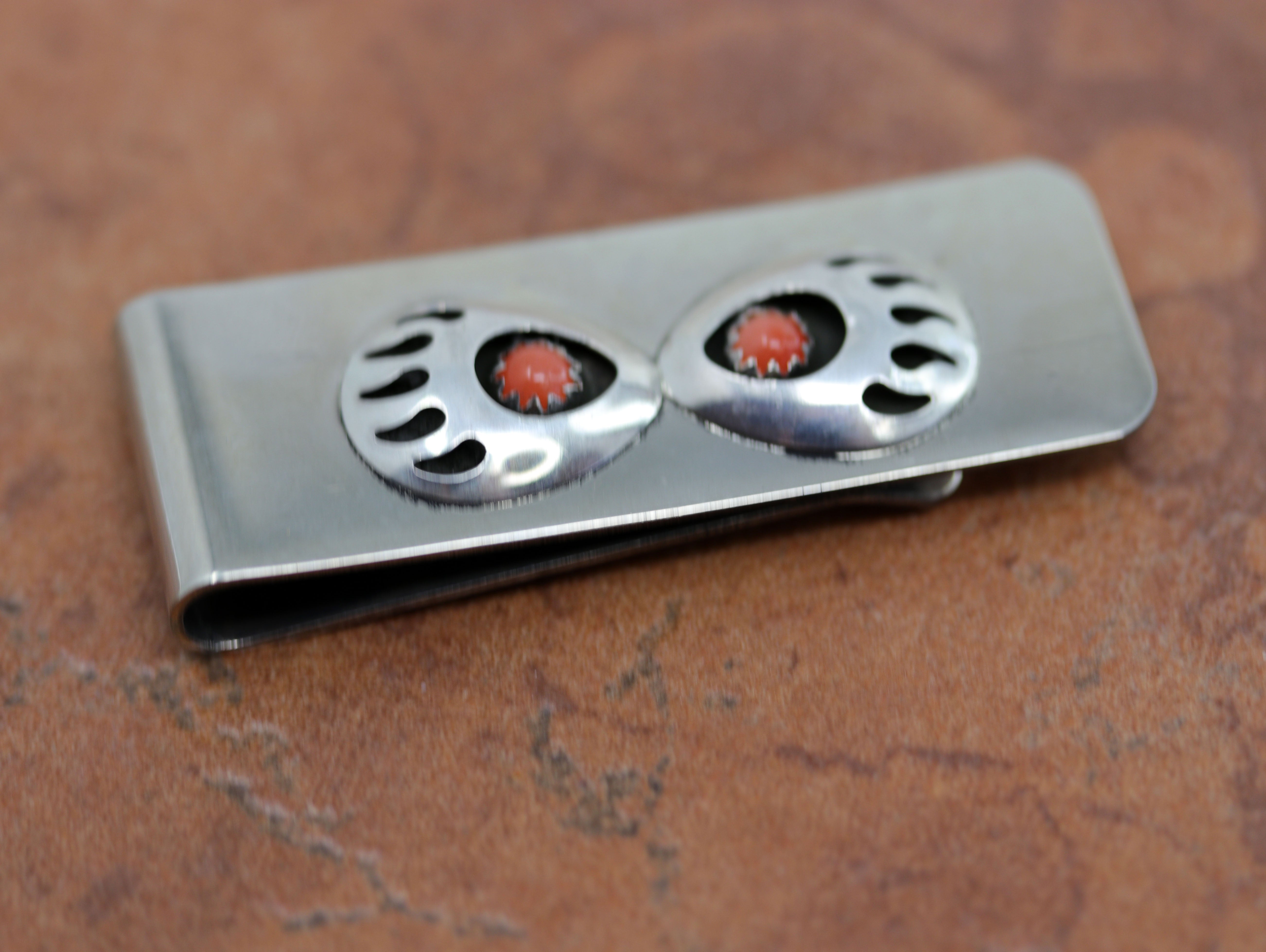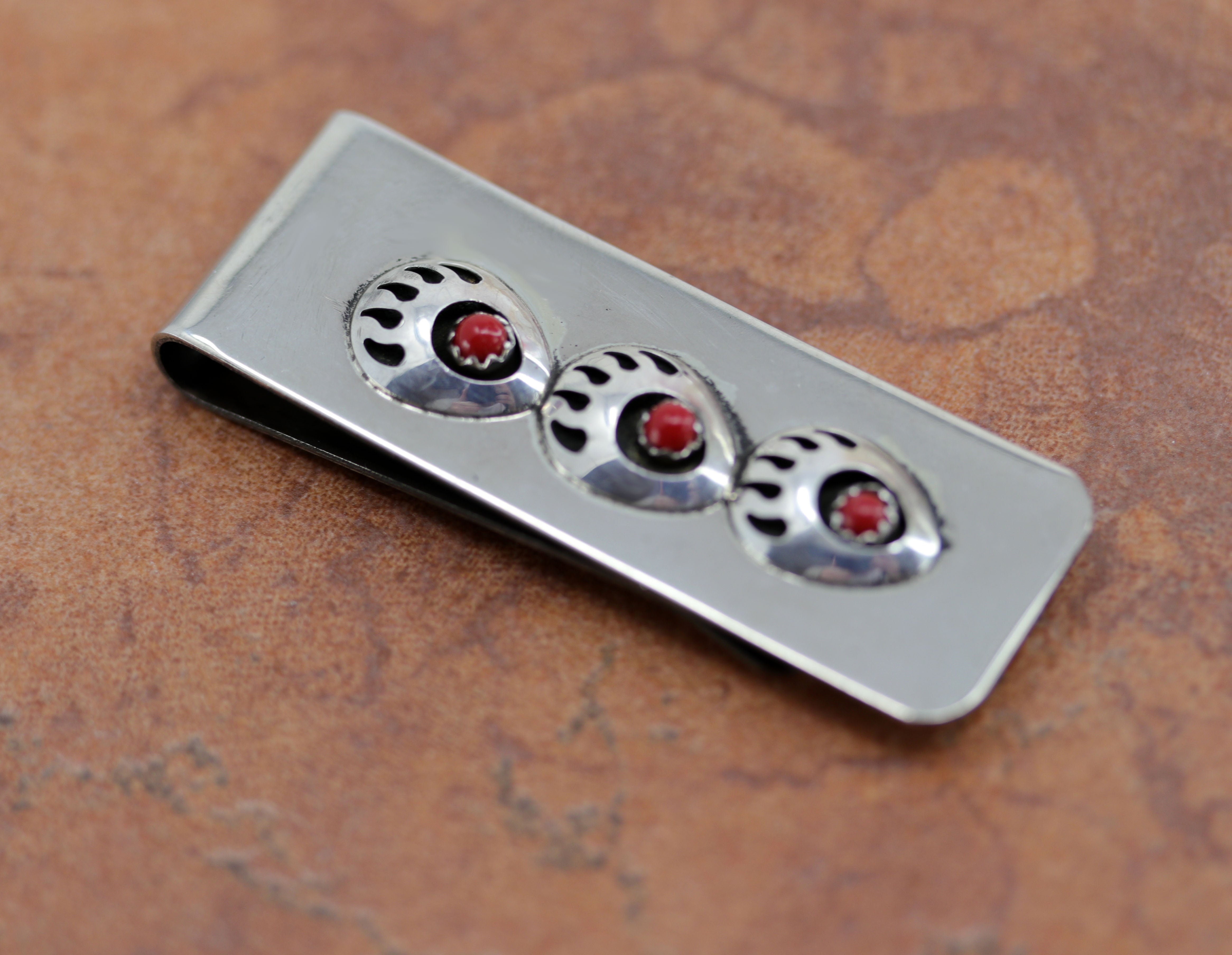 Navajo Coral Bear Paw Money Clip