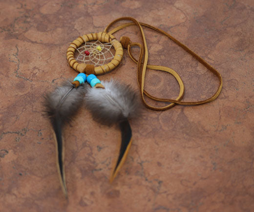 Navajo Leather Beaded Dreamcatcher Necklace