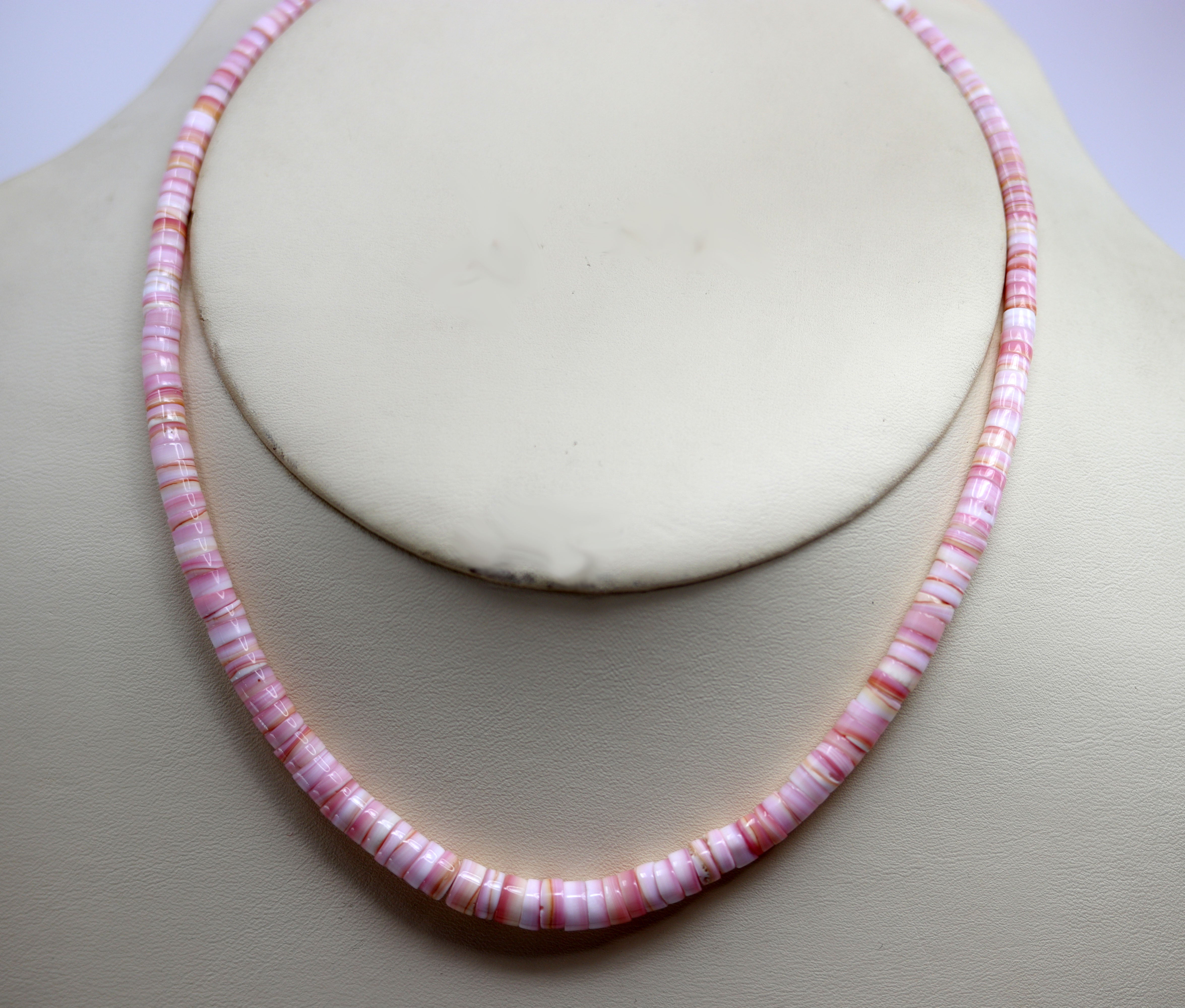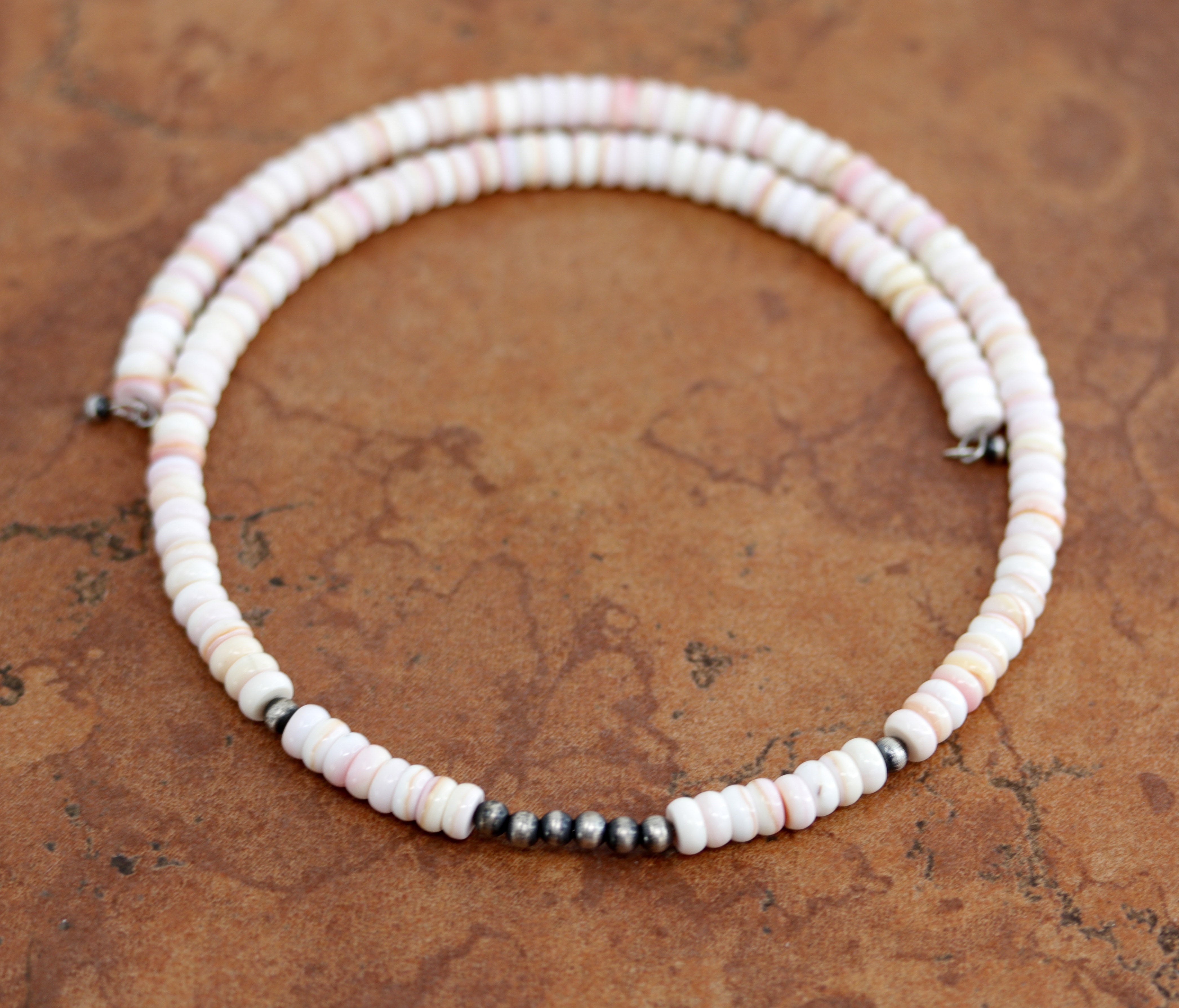 Navajo Heishi Pink Conch Silver Necklace