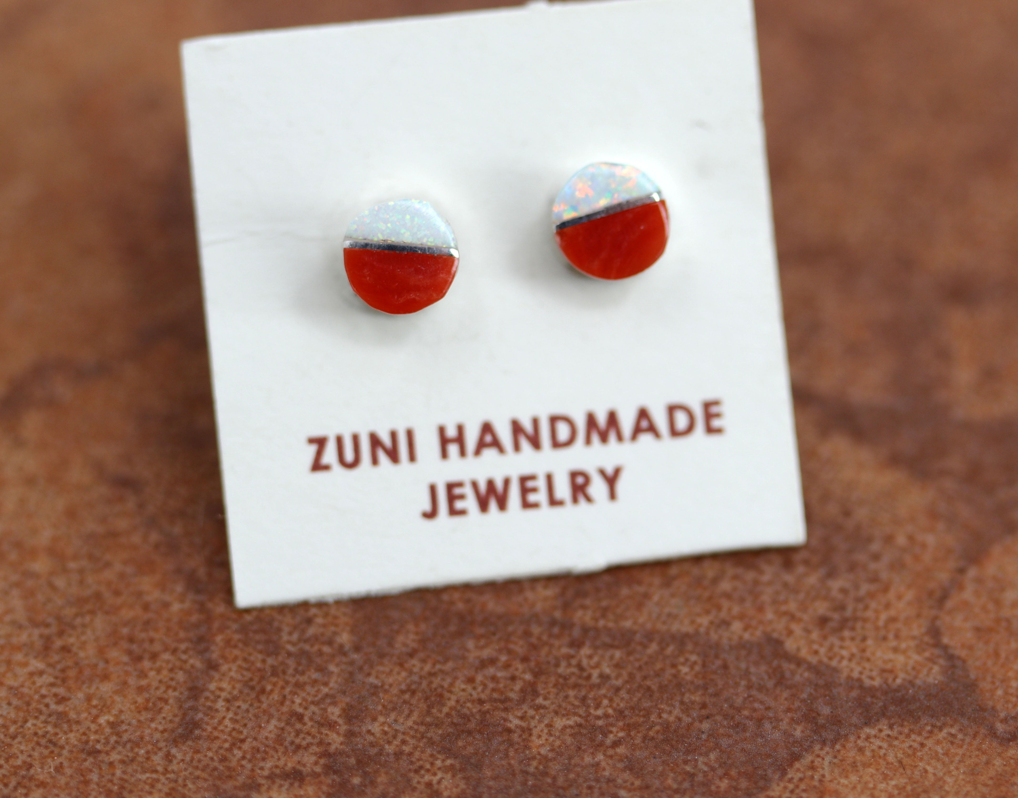 Zuni Silver Coral Created Opal Earrings