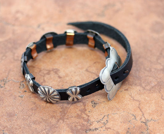 Navajo Leather Silver Buckle Bracelet
