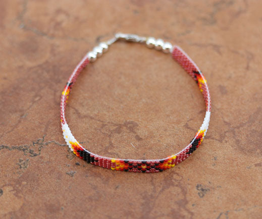 Navajo Silver Red Beaded Bracelet