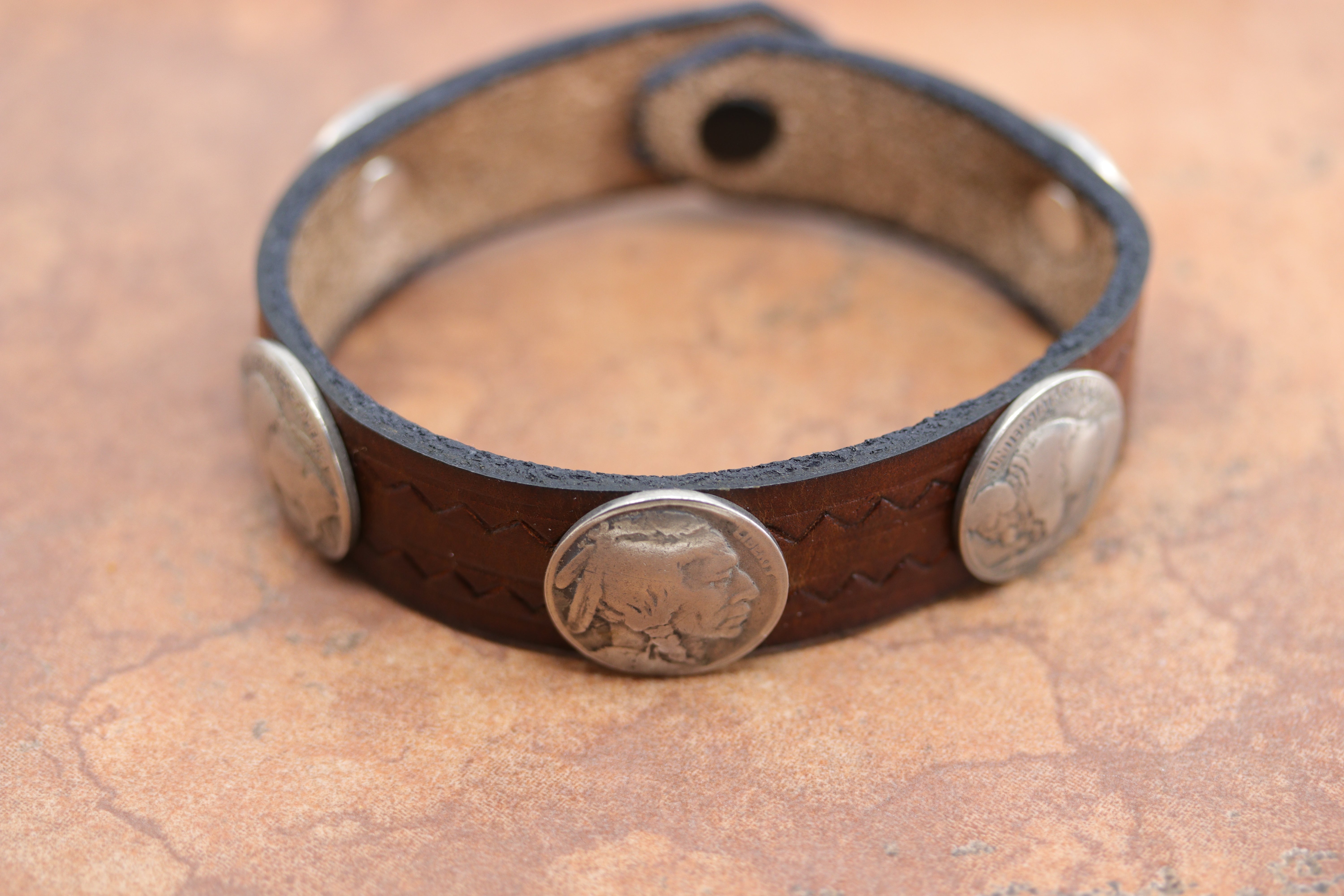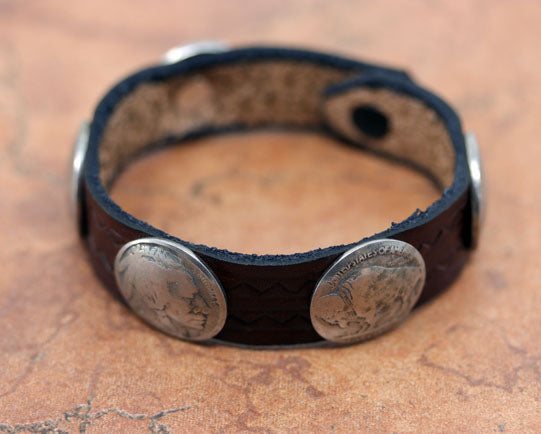 Navajo Leather Buffalo Nickel Coin Men's Bracelet