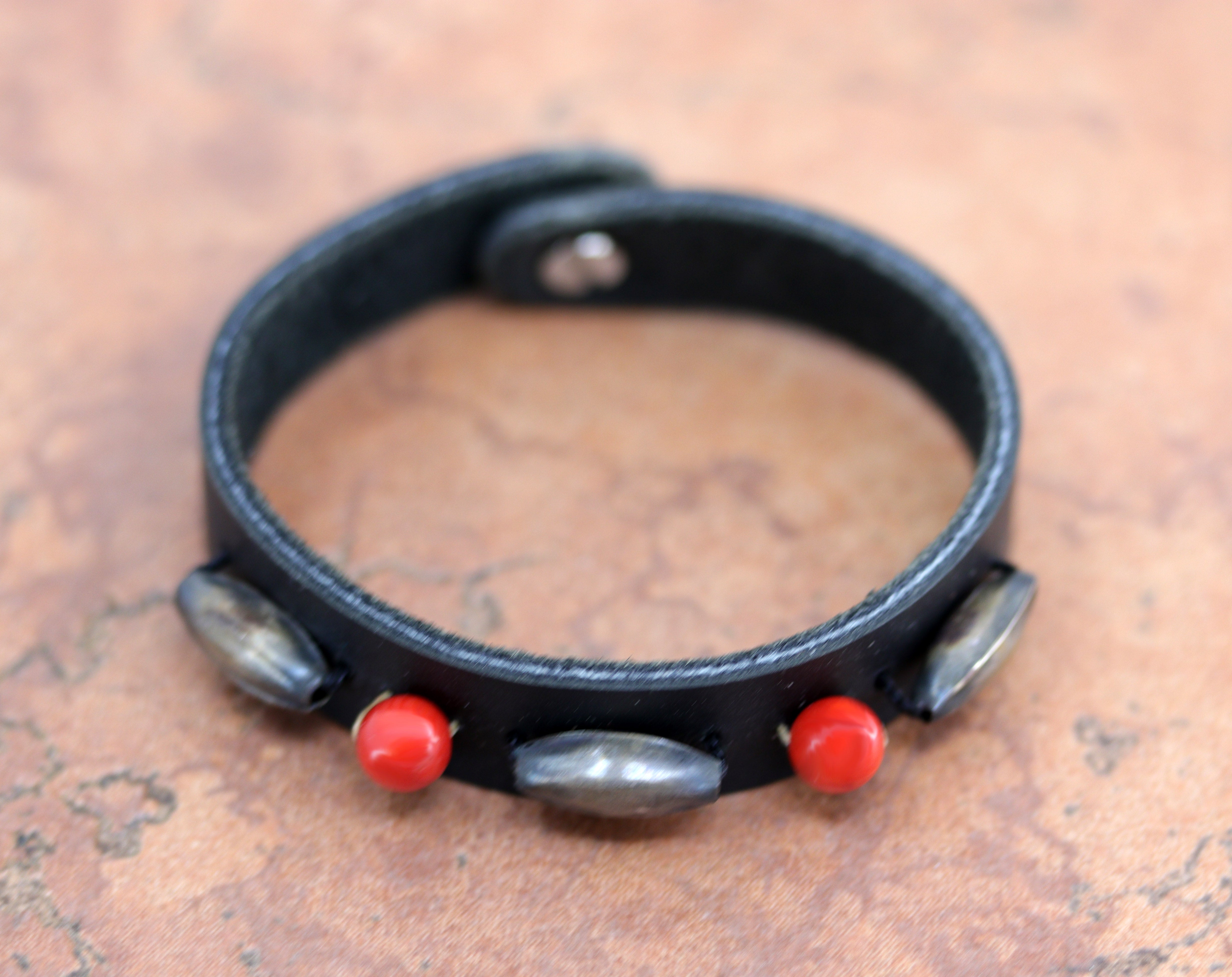 Navajo Leather Coral Bracelet