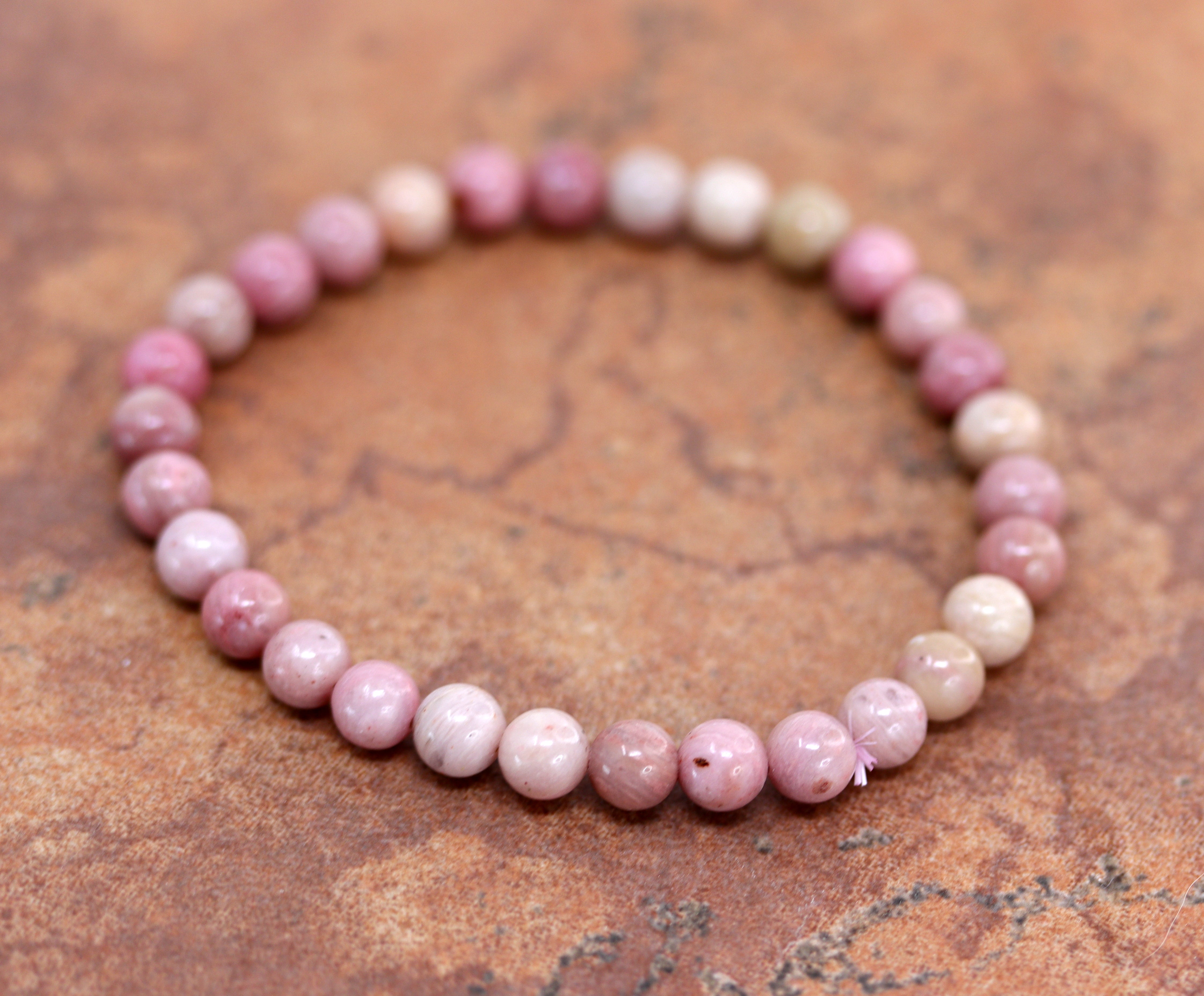 Beaded Pink Rhodonite 6 mm Stretch Bubble Bracelet