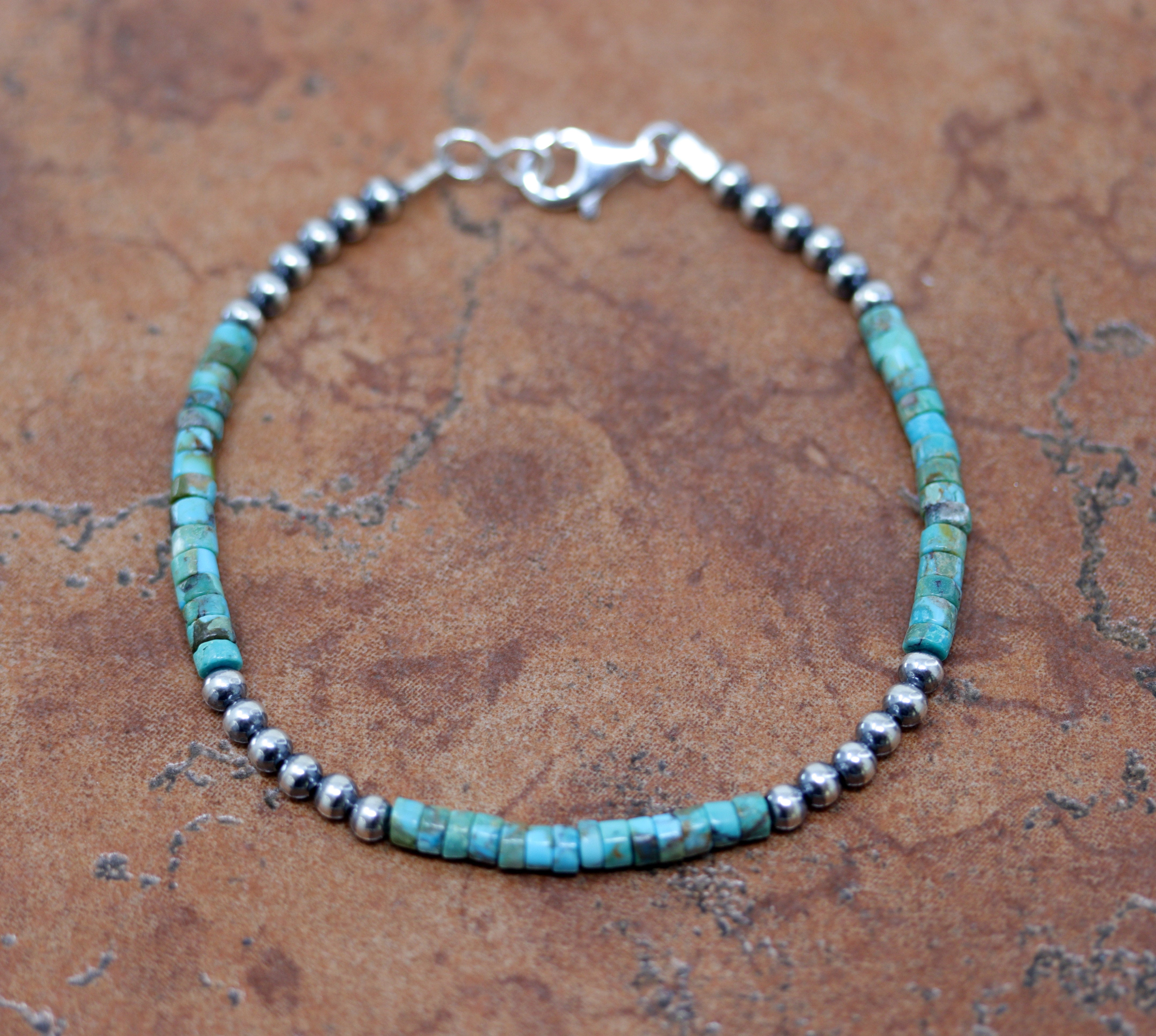 9" Desert Pearl Silver Turquoise Heishi Anklet