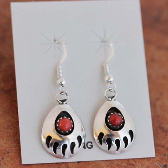 Navajo Coral Bear Paw Earrings