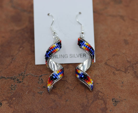 Navajo Native American very nice earrings. They are made from sterling silver and beads. The earrings are about 2 3/8" in length including the hook, and 5/8" in width.