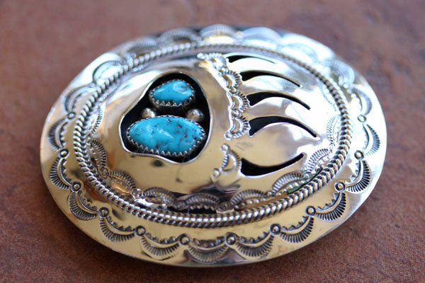 Navajo Silver Turquoise Bear Paw Belt Buckle