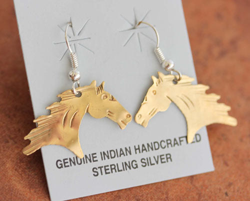 Navajo Sterling Silver Gold Overlay Horse Earrings
