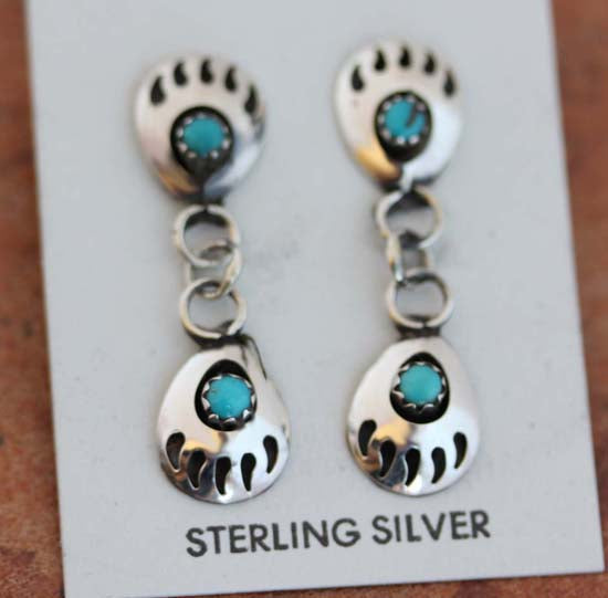 Navajo Turquoise Bear Paw Earrings