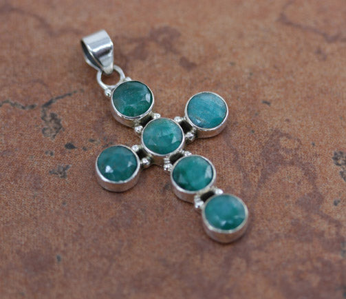 It is made from Sterling Silver and emerald. It is about 1 7/8" in length including the bail, and about 1" in width. This item is not Native American.