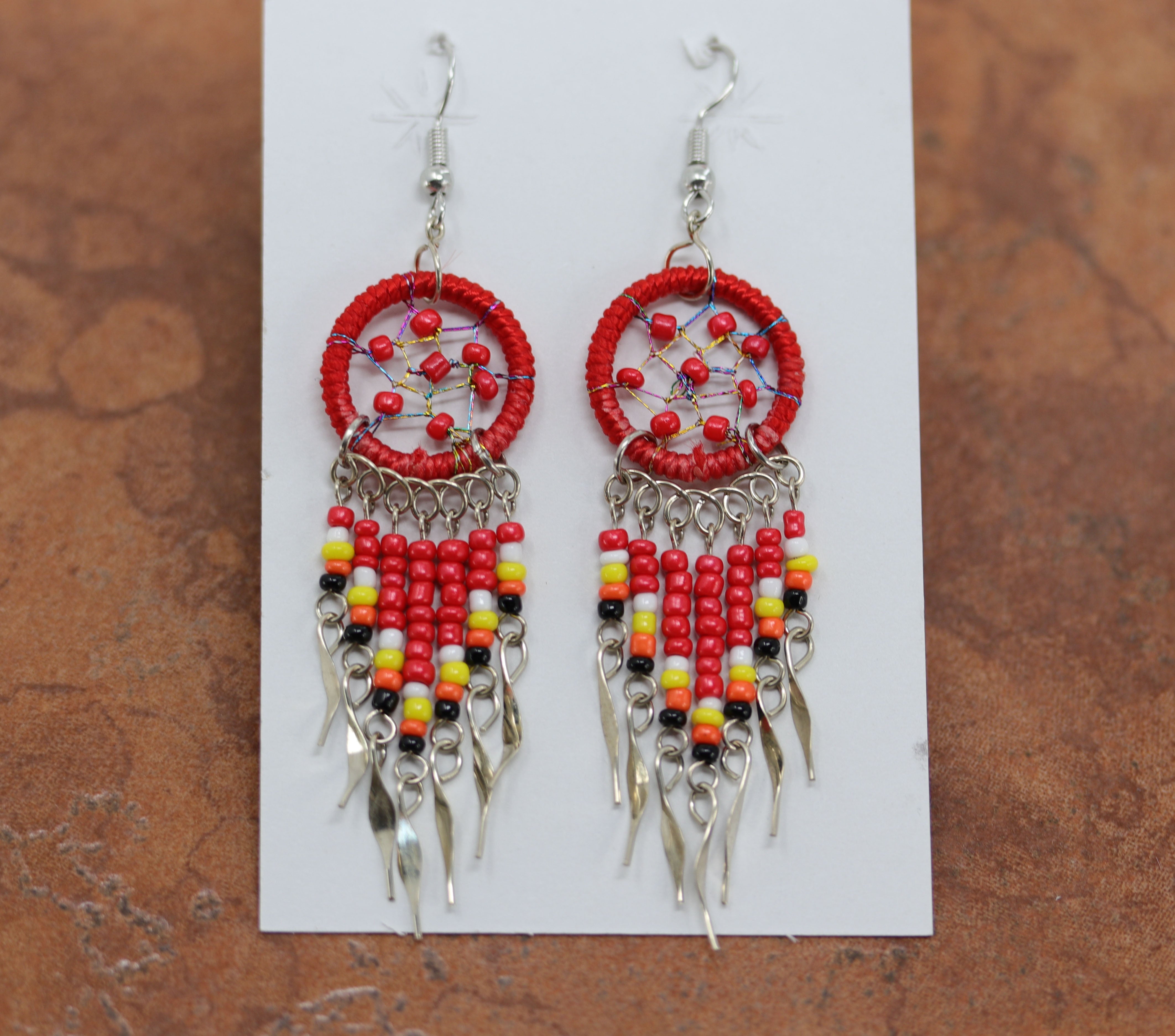 The hooks are made from Zinc Alloy. The earrings are about 3 3/8" in length including the hook, and 1" in width. This item is not Native American.