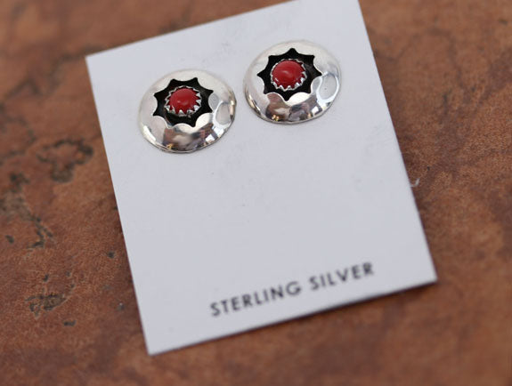 Navajo Silver Coral Earrings