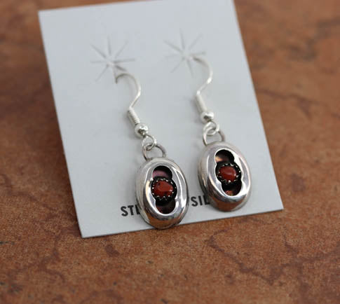 Navajo Silver Coral Earrings