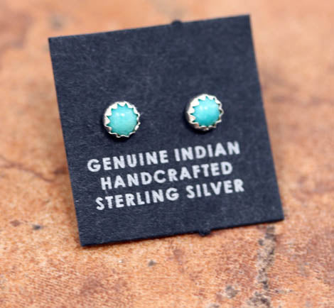 Wonderful Navajo earrings. They are made from sterling silver and turquoise. The earrings are 3/16" in diameter.