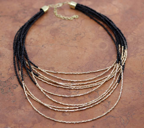 Gorgeous necklace that is 18" in length including the 3" extender, and the bead work measures about 1/16" in width. It is made from zinc alloy and beads.