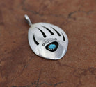 A traditional Navajo Native American bear paw pendant. It is made from sterling silver and turquoise. It is about 1 3/4" in length including the bail and 1 1/8" in width.