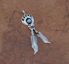 A traditional Navajo Native American bear paw pendant. It is made from sterling silver and turquoise. It is about 1 3/4" in length including the bail and 3/8" in width.