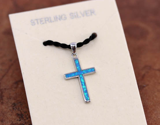 Silver Created Opal Cross Pendant