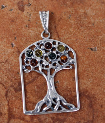 It is made from sterling silver and Baltic amber. The pendant is 1 3/4" in length including the hook, and 1" in width. This item is not Native American.