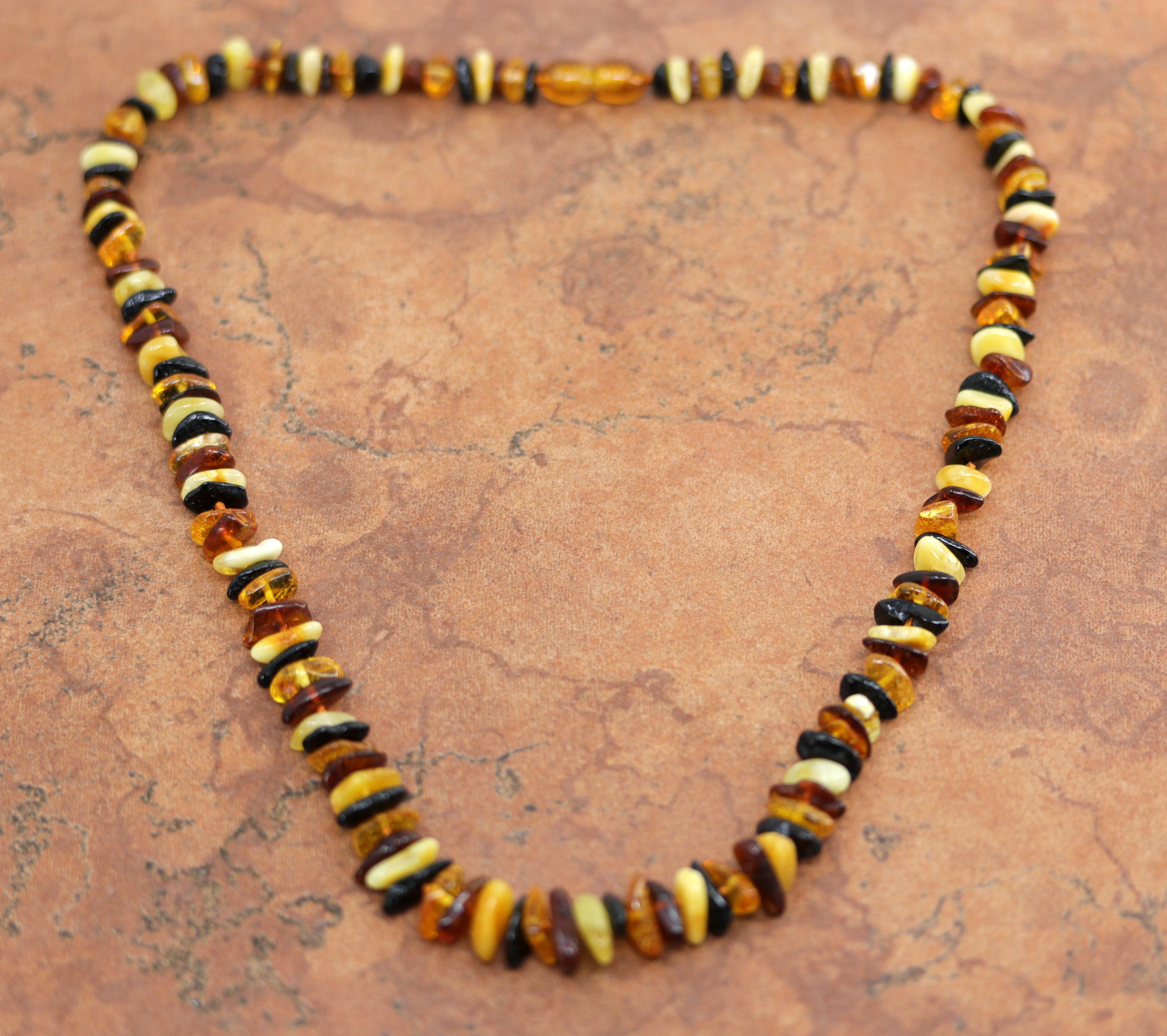 Beautiful necklace with amber that comes from the Baltic Sea. The necklace is about 20" in length, and about 1/2" wide. This item is not Native American.
