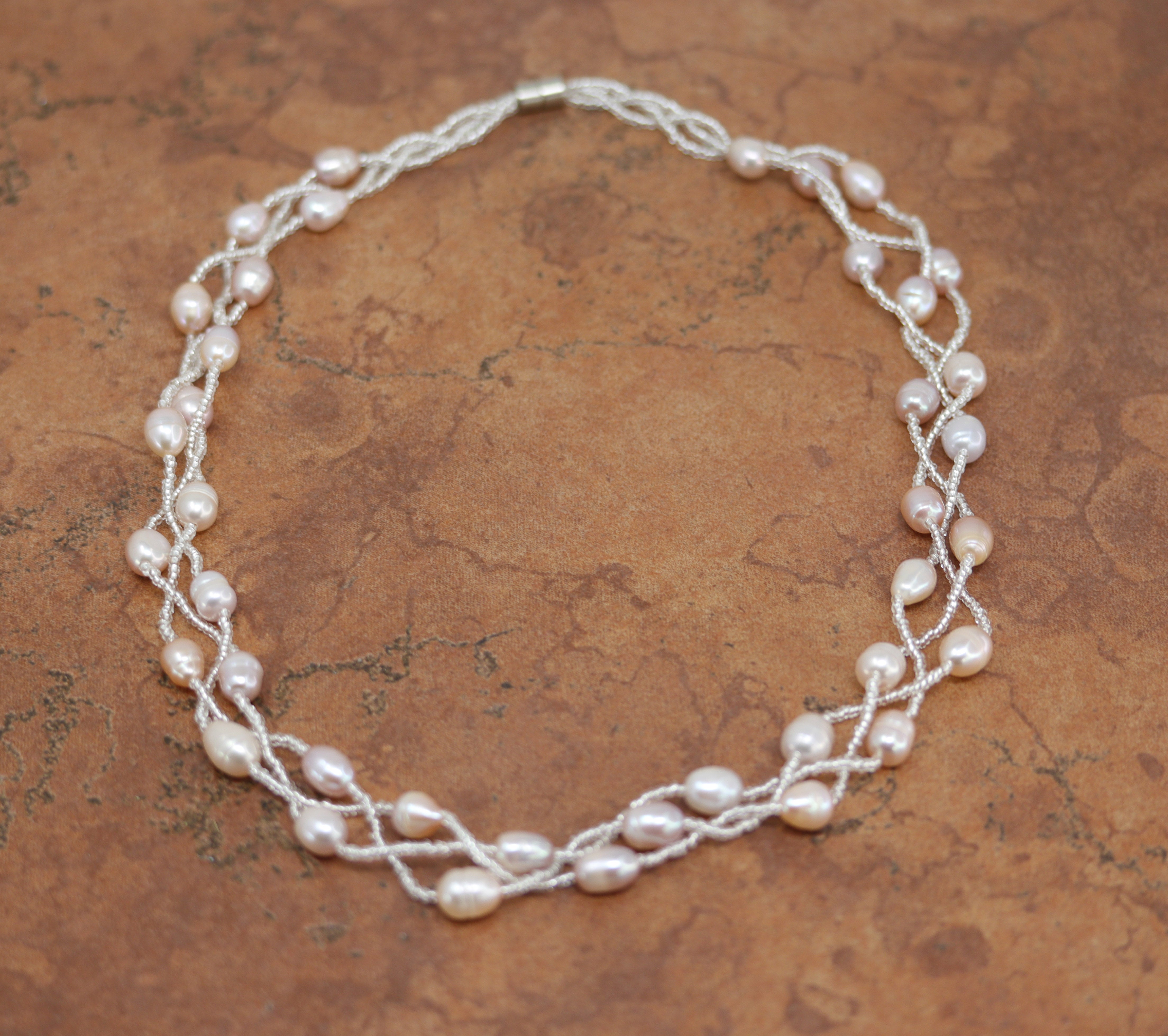 Beautiful pearl necklace that is 18" in length and the pearls measure about 5/16". The clasp is magnetic. This item is not Native American.