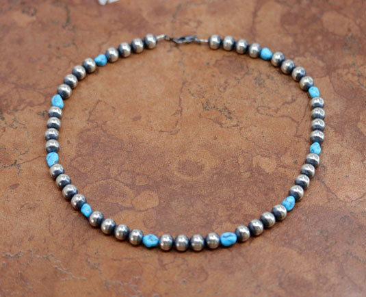 18" Desert Pearl Silver Sleeping Beauty Turquoise Necklace
