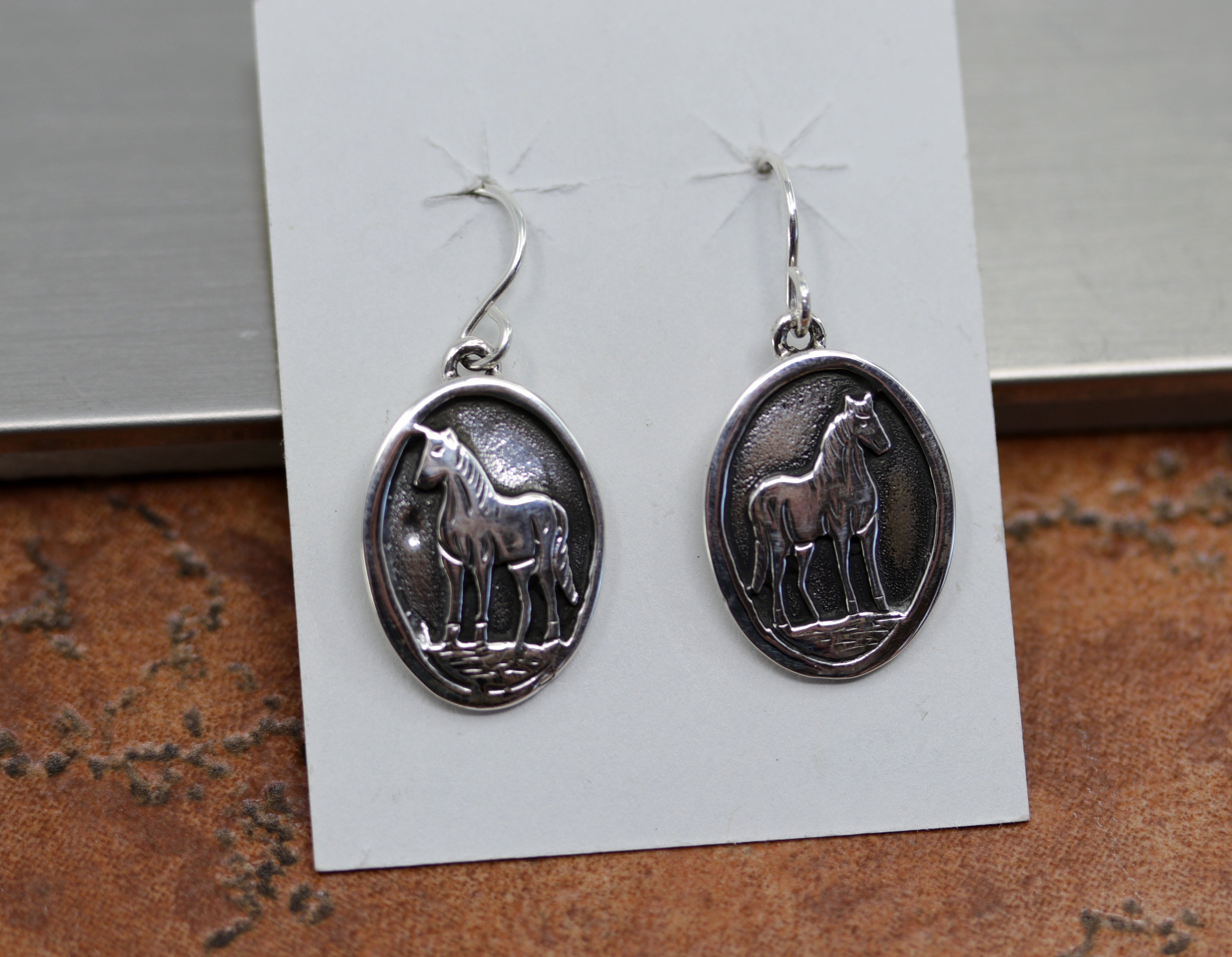 Beautiful Native American earrings. They are made from sterling silver. The earrings are about 1 1/4" in length including the hook, and 5/8" in width.